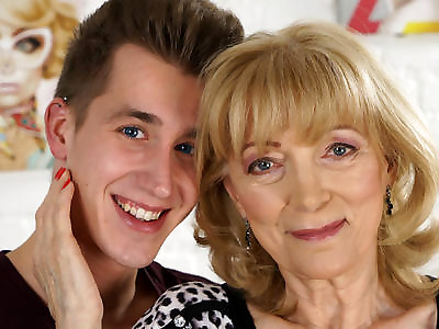 Huge-boobed grandmother and red-hot teenie share a pipe