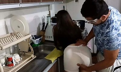 Hindo Latina Stepsister Plumbs with her Cousin in the Kitchen Cum in Mouth and Eats Cum