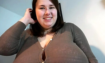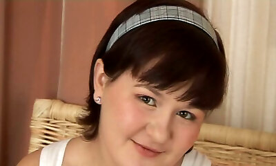 Fat brunette girl with big boobs in solo movie
