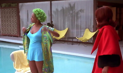 Lots of lusty well shaped kinky nymphs dance under the water jet