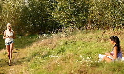 Zwei heisse Nubiles mit prallen titten ficken sich im freien