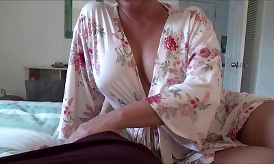 Mature Stepmom helps her stepson with a battered leg relax