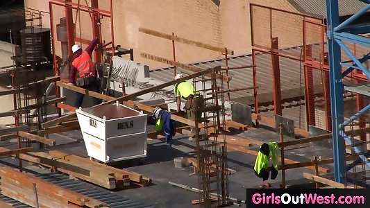 Pale huge-titted blonde urinates and then deepthroats a man meat on the river bank
