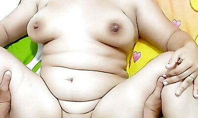 Attention! Highly fat woman shows herself and caresses her pussy