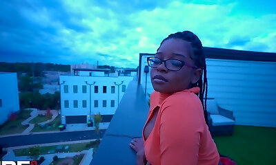 Teenie with saggy tits and glasses got destroyed from fucking during a wild, interracial session