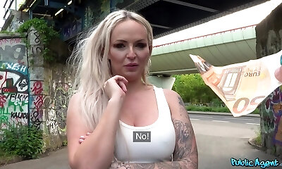 Tattooed ash-blonde slut Louise Lee fucked in the public place