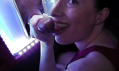 Milf sucks big cock in gloryhole while her cuckold spouse films her on camera