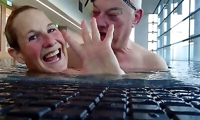 German lean amateur milf fucked underwater in pool in Mallorca - Pov